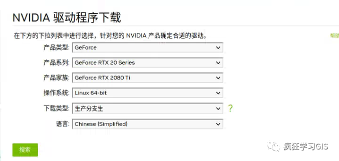 首先,我们进入NVIDIA驱动程序的官方网站(https://www.nvidia.cn/Download/index.aspx?lang=cn),并在如下图所示的界面处,依据自己电脑中显卡的型号、电脑的系统等加以选择。