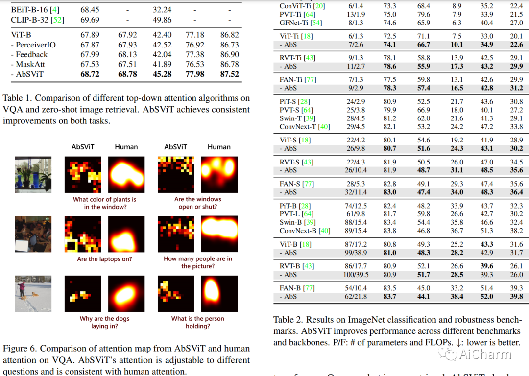 当前的注意力算法(例如自注意力)是刺激驱动的,并突出显示图像中的所有显着对象。然而,像人类这样的智能代理通常会根据手头的高级任务来引导他们的注意力,只关注与任务相关的对象。这种任务引导的自上而下注意力的能力提供了任务自适应表示,并帮助模型泛化到各种任务。在本文中,我们从经典的综合分析(AbS)视觉角度考虑自上而下的注意力。先前的工作表明视觉注意力和稀疏重建之间在功能上是等价的;我们展示了一个 AbS 视觉系统,它优化了由目标导向的自上而下信号调制的类似稀疏重建目标,自然地模拟了自上而下的注意力。我们进一步提出综合分析视觉变换器(AbSViT),它是一种自上而下的调制 ViT 模型,可以变分逼近 AbS,并实现可控的自上而下的注意力。对于现实世界的应用程序,AbSViT 持续改进视觉语言任务的基线,例如 VQA 和零样本检索,其中语言引导自上而下的注意力。AbSViT 还可以作为通用主干,提高分类、语义分割和模型鲁棒性的性能。