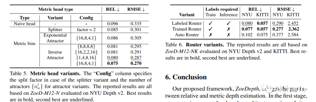 本文解决了单幅图像的深度估计问题。现有的工作要么专注于不考虑度量尺度的泛化性能,即相对深度估计,要么专注于特定数据集的最新结果,即度量深度估计。我们提出了第一种结合这两个世界的方法,从而形成一个具有出色泛化性能同时保持度量规模的模型。我们的旗舰模型 ZoeD-M12-NK 使用相对深度在 12 个数据集上进行预训练,并使用度量深度在两个数据集上进行微调。我们为每个域使用一个轻量级头部和一个新颖的箱调整设计,称为公制箱模块。在推理过程中,每个输入图像都会使用潜在分类器自动路由到适当的头部。我们的框架允许多种配置,具体取决于用于相对深度预训练和度量微调的数据集。无需预训练,我们就可以显着提高 NYU Depth v2 室内数据集的最新技术 (SOTA)。通过对 12 个数据集进行预训练并在 NYU Depth v2 室内数据集上进行微调,我们可以进一步改进 SOTA,在相对绝对误差 (REL) 方面总共提高了 21%。最后,ZoeD-M12-NK 是第一个可以在多个数据集(NYU Depth v2 和 KITTI)上联合训练的模型,性能不会显着下降,并对来自室内和室外领域的八个未见过的数据集实现了前所未有的零样本泛化性能。代码和预训练模型可在此 https URL 公开获取。