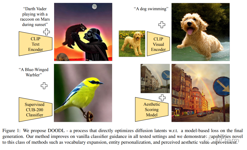 分类器指导——使用图像分类器的梯度来引导扩散模型的生成——有可能极大地扩展对图像生成和编辑的创意控制。然而,目前的分类器指导需要训练新的噪声感知模型以获得准确的梯度,或者使用最终一代的一步去噪近似,这会导致梯度错位和次优控制。我们强调了这种近似的缺点,并提出了一种新颖的指导方法:扩散潜伏直接优化(DOODL),它通过优化扩散潜伏来实现即插即用指导。预训练分类器在真实生成像素上的梯度,使用可逆扩散过程来实现内存高效的反向传播。DOODL 展示了更精确指导的潜力,在不同形式的指导中,在计算和人类评估指标上,DOODL 的表现优于一步分类器指导:使用 CLIP 指导来改进 DrawBench 中复杂提示的生成,使用细粒度视觉分类器来扩展词汇量稳定扩散,使用 CLIP 视觉编码器实现图像调节生成,并使用美学评分网络提高图像美观度。此 https URL 处的代码。