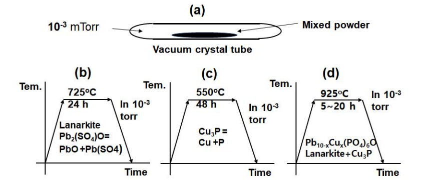 第三步,将黄铅矿和磷化亚铜晶体研磨成粉末,并在坩埚中混合,然后密封入晶闸管中,真空度为 10 的 - 3 次方托。将装有混合粉末的密封管在 925 摄氏度的炉子中加热 5- 20 小时。在此过程中,混合物发生反应并转化为最终材料。其中,硫酸铅中的硫元素在反应过程中蒸发了。