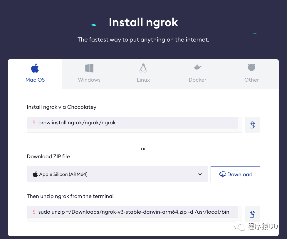 进入官网的下载页面:https://ngrok.com/download
