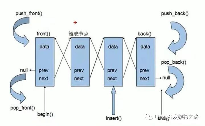 list | 双向循环链表。使用起来很高效,对于任意位置的插入和删除都很快,在操作过后,以后指针、迭代器、引用都不会失效 |