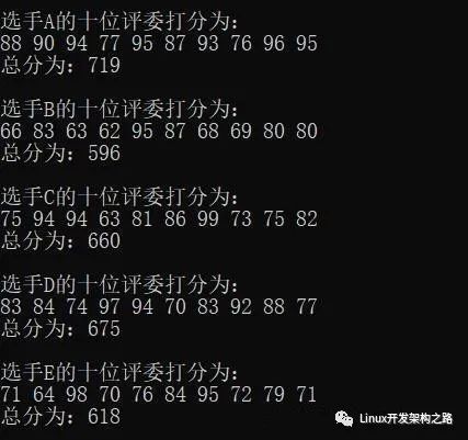 //给五个选手打分