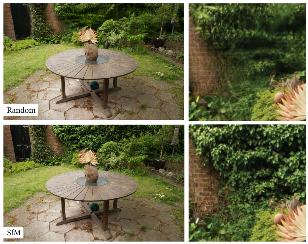 使用 SfM 点进行初始化会产生更好的效果。