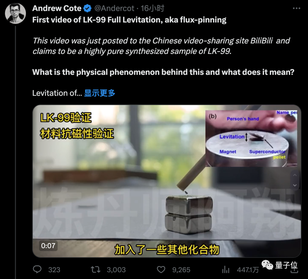 然而,这次的发布与前一阵子各种和LK-99验证相关视频不同——没有署名单位。
