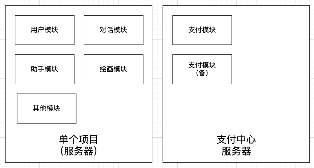 所以我们将部分重要模块(比如支付模块)的代码从原本项目中抽离,单独作为了一个服务,并且还启动了备份,从而保证了支付业务的稳定性。说什么也不能影响收入对不对~