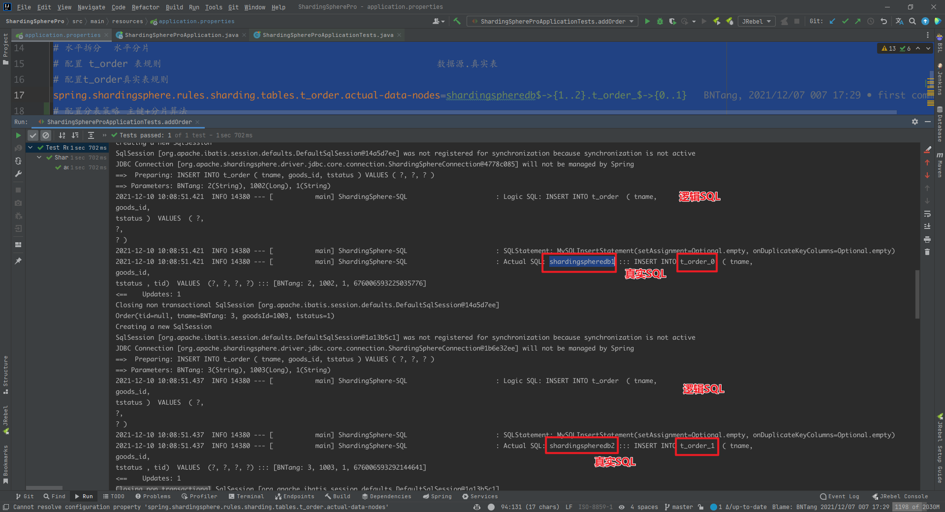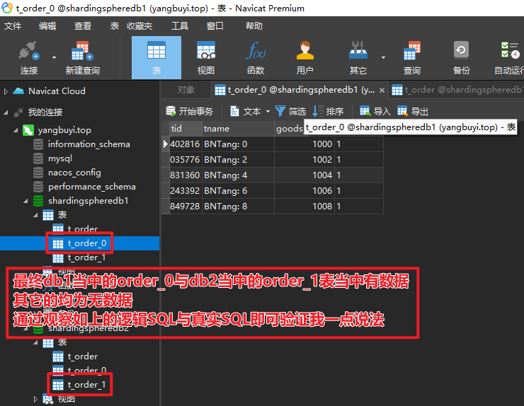 最终如上 application.yml 当中的配置含义为分表是按照 tid 进行分表,分库是按照 goods\_id 进行的分库,到此该章节的内容到此结束。