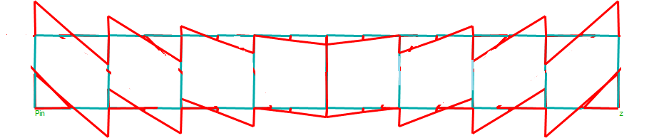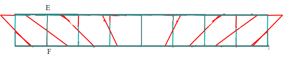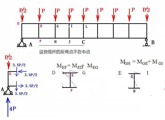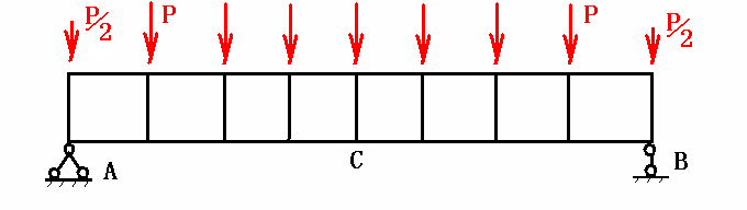 如果在桁架立杆的刚接点处施加荷载,它基本上就是一个梁,如图2所示, 所有关于梁的知识,在这里任然适用!从简支梁的角度可以得到如下的结论。