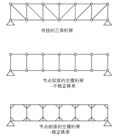 ▲图2 空腹桁架和简支梁