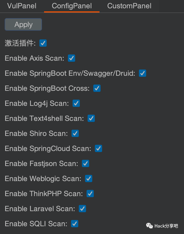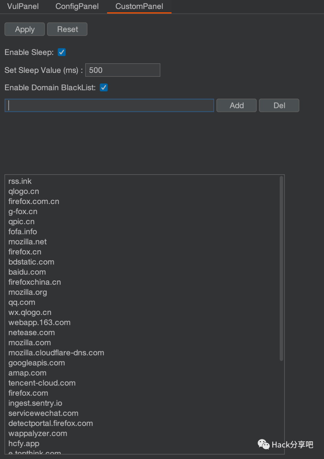 自定义黑名单,插件不扫描黑名单的url列表,进行Reg匹配优先级第一。