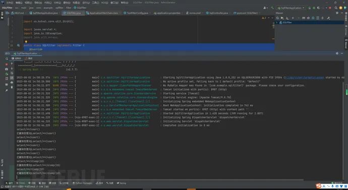 如下是Filter过滤,在本文中,我过滤掉了增删改查等关键字。因为在注入中多数都是靠这几个函数来玩。