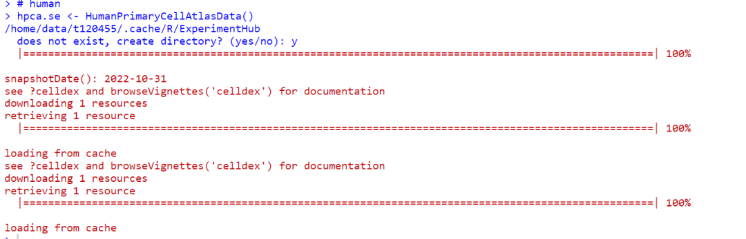 DatabaseImmuneCellExpressionData这个数据集下载很慢,晚上感觉更慢,这里还是用前面的 HumanPrimaryCellAtlasData进行案例测试