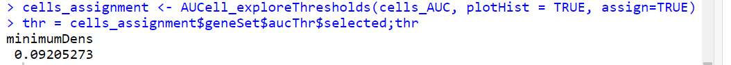cells_assignment <- AUCell_exploreThresholds(cells_AUC, plotHist = TRUE, assign=TRUE)