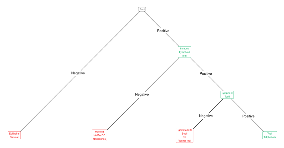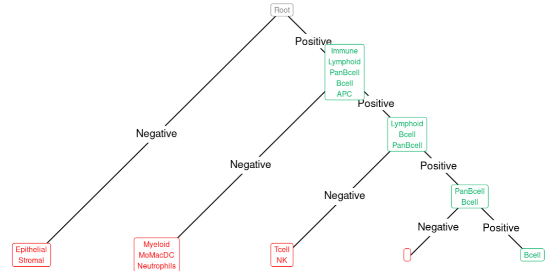 一个 "门控模型"(GM),由一组定义相关细胞群的标记基因组成。基因门控模型可以是简单的单一标记基因,也可以是阳性和阴性标记基因的组合。更复杂的 GM 可以分级方式构建,类似于流式细胞仪中使用的门控策略。