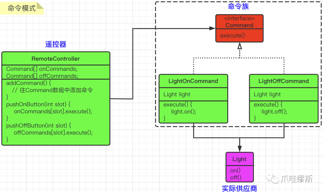 );其次,创建命令接口Command,提供执行命令的方法execute()