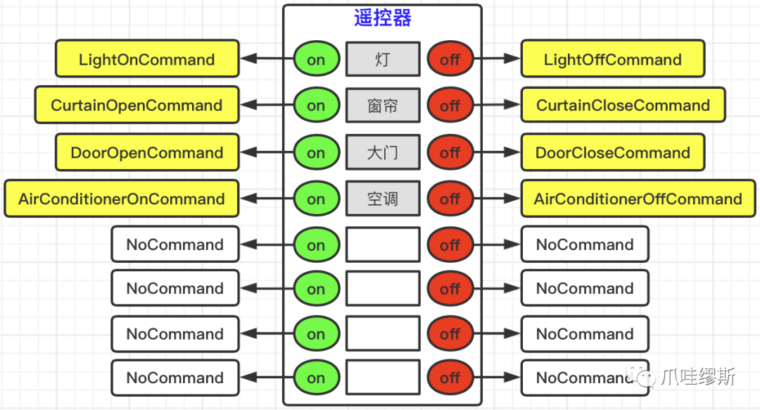 为了加深模式的理解,我们假设要设计一款多功能遥控器,这个遥控器有一排的on