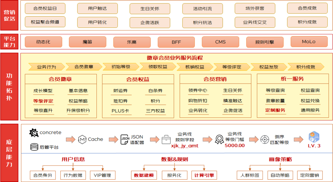 ▪功能支撑:会员成长体系、等级计算策略、权益体系、营销底层能力支持;