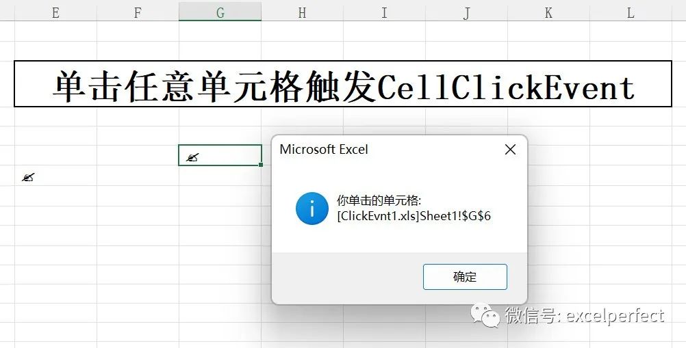 如下图1所示,单击工作簿中任意工作表单元格时,会弹出一个消息框,显示鼠标单击的单元格地址。