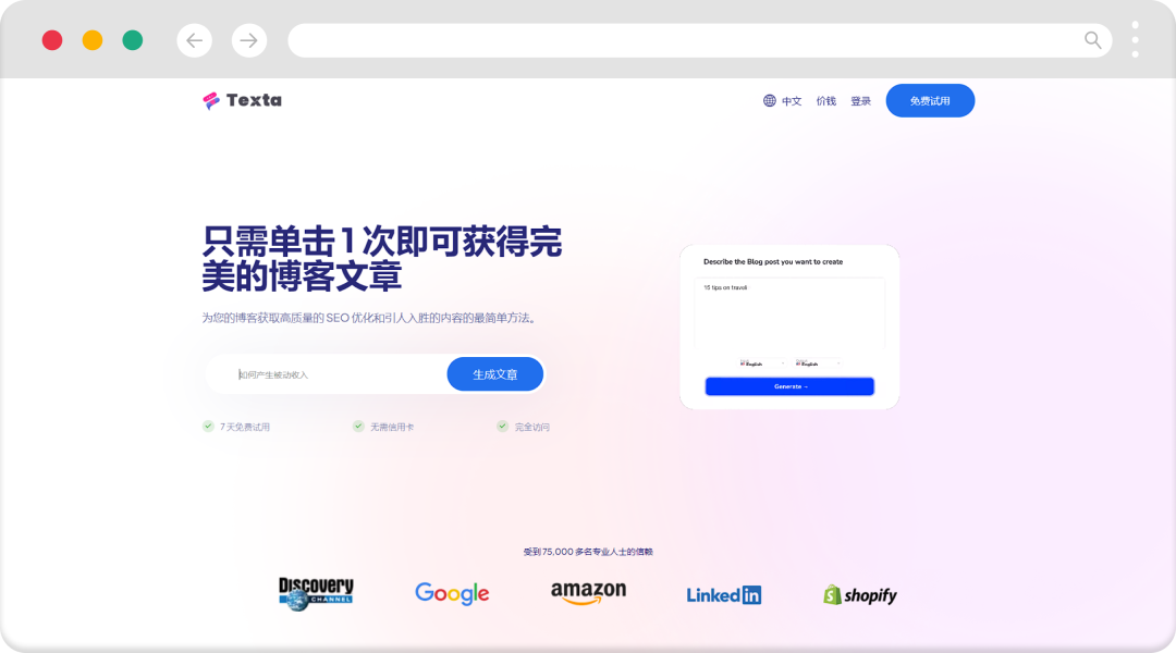 Texta.ai 是一款强大的AI博客写作和文章创意生成工具。它可以帮助您快速生成高质量、优化SEO并具有吸引力的内容。无论是需要营销博客文章、求职信还是其他任何类型的内容,只需输入相关主题,Texta.ai 就能提供优质的内容,让你轻松地发布。