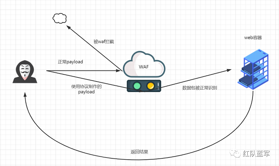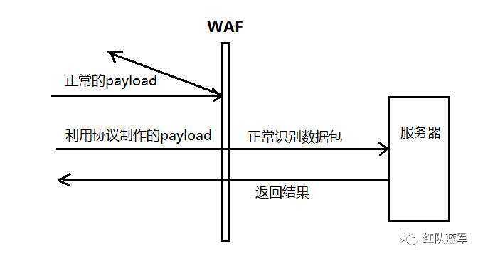 正常传输的payload都是可以被waf的正则匹配到的,而进行分块传输之后的payload,waf的正则不会进行匹配,而又满足http的规则,所以就能绕过waf。