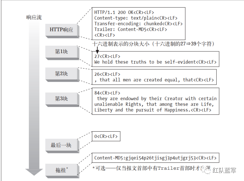 分块传输编码是超文本传输协议(HTTP)中的一种数据传输机制,允许HTTP由应用服务器向客户端发送的数据分成多个部分,在消息头中指定 Transfer-Encoding: chunked 就表示整个response将使分块传输编译来传输内容。一个消息块由n块组成,并在最后一个大小为0的块结束。