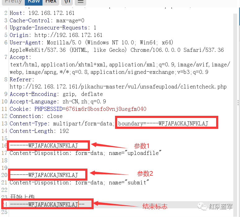 这里拿上面的边界来做文章,这里看到了,当上面定义了boundary=----WFJAFAOKAJNFKLAJ的时候我想到了两个问题。