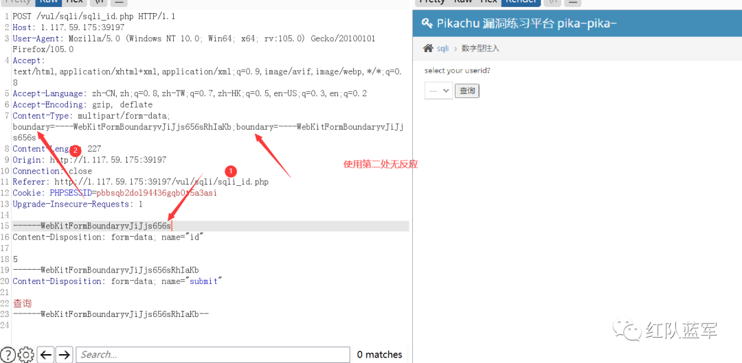 所以当定义两个boundary的时候,只有第一个起作用。经过了上面的测试发现,我们可以通过构造多个boundary和修改boundary结束标志来达到混淆的效果,这里进行测试。