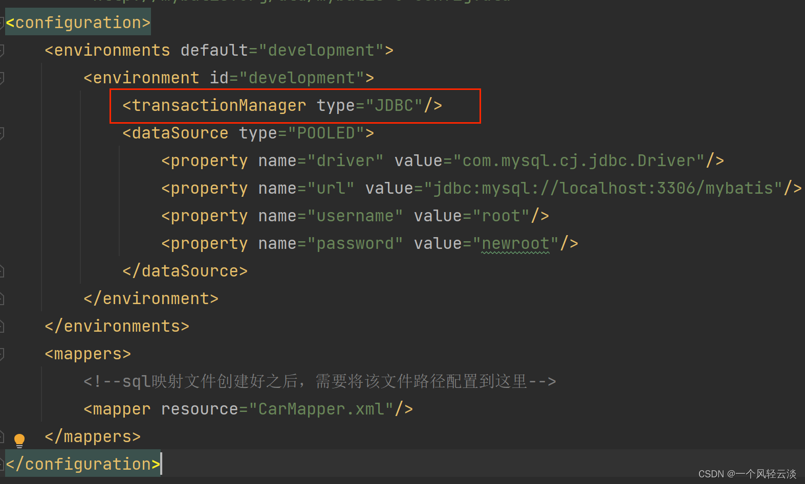 }我们知道mybatis的事务管理器类型有只能填MANAGED或者JDBC,在本框架中我们只实现最简单的JDBC事务管理器