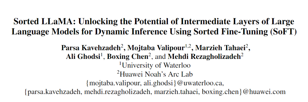 Paper: Sorted LLaMA: Unlocking the Potential of Intermediate Layers of Large Language Models for Dynamic Inference Using Sorted Fine-Tuning Link: https://arxiv.org/abs/2309.08968