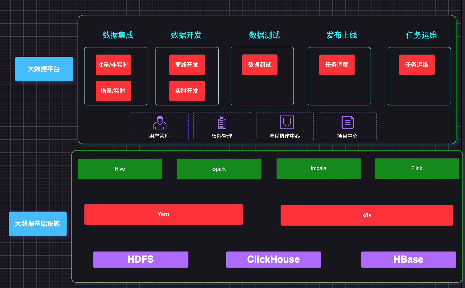 大数据平台就是为提高数据研发效率,降低数据研发门槛,让数据在一个设备流水线快速完成加工。