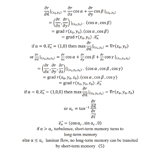 Nobel Prize winner Susumu Tonegawa’s group identified an increase of synaptic strength and dendritic spine density specifically in consolidated memory engram cells. Formula (2) and (4), the memory consolidation formula (5) can be shown as follows, it is the relationship of working memory and long-term memory, and maximum of directional derivatives is gradient. From hippocampus to cortices, it is achieved from non-classical to classical in brain. Long-term memory is gradient of brain plasticity