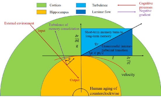 14.As recently shown in functional magnetic resonance imaging (FMRI) with high spatial resolution, turbulence shows to offer a based way to facilitate energy and information transfer across spatiotemporal scales in brain dynamics [27]. Memory from hippocampus to different cortices because of turbulence rather than laminar flow. Long-term memory is gradient of brain plasticity