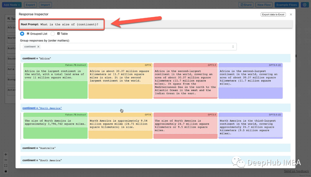 响应选择器有一个分组列表或表的选项,可以在下面看到所引用的每个模型的输出。