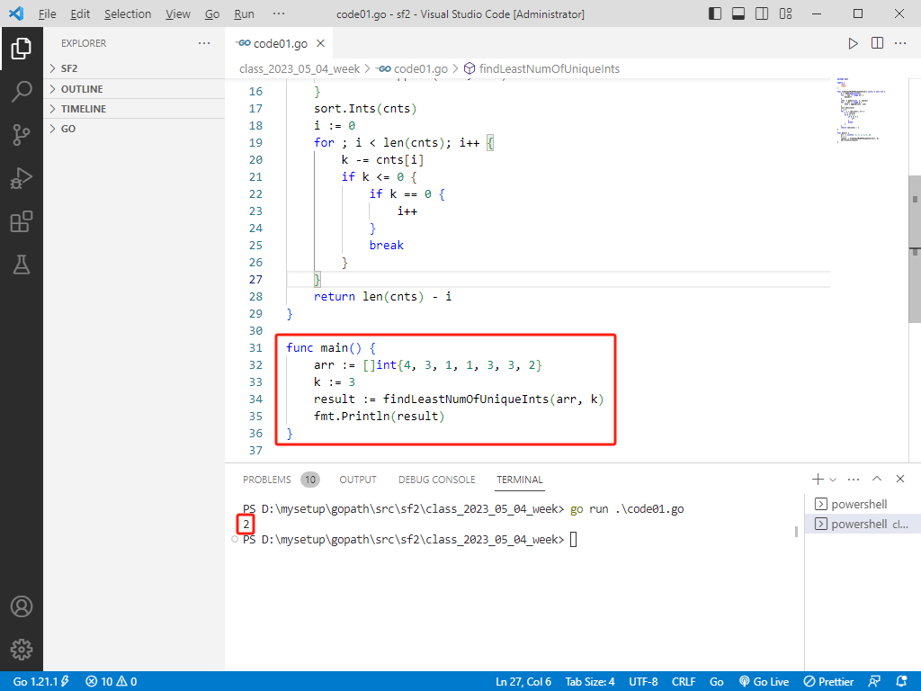 func findLeastNumOfUniqueInts(arr []int, k int) int {