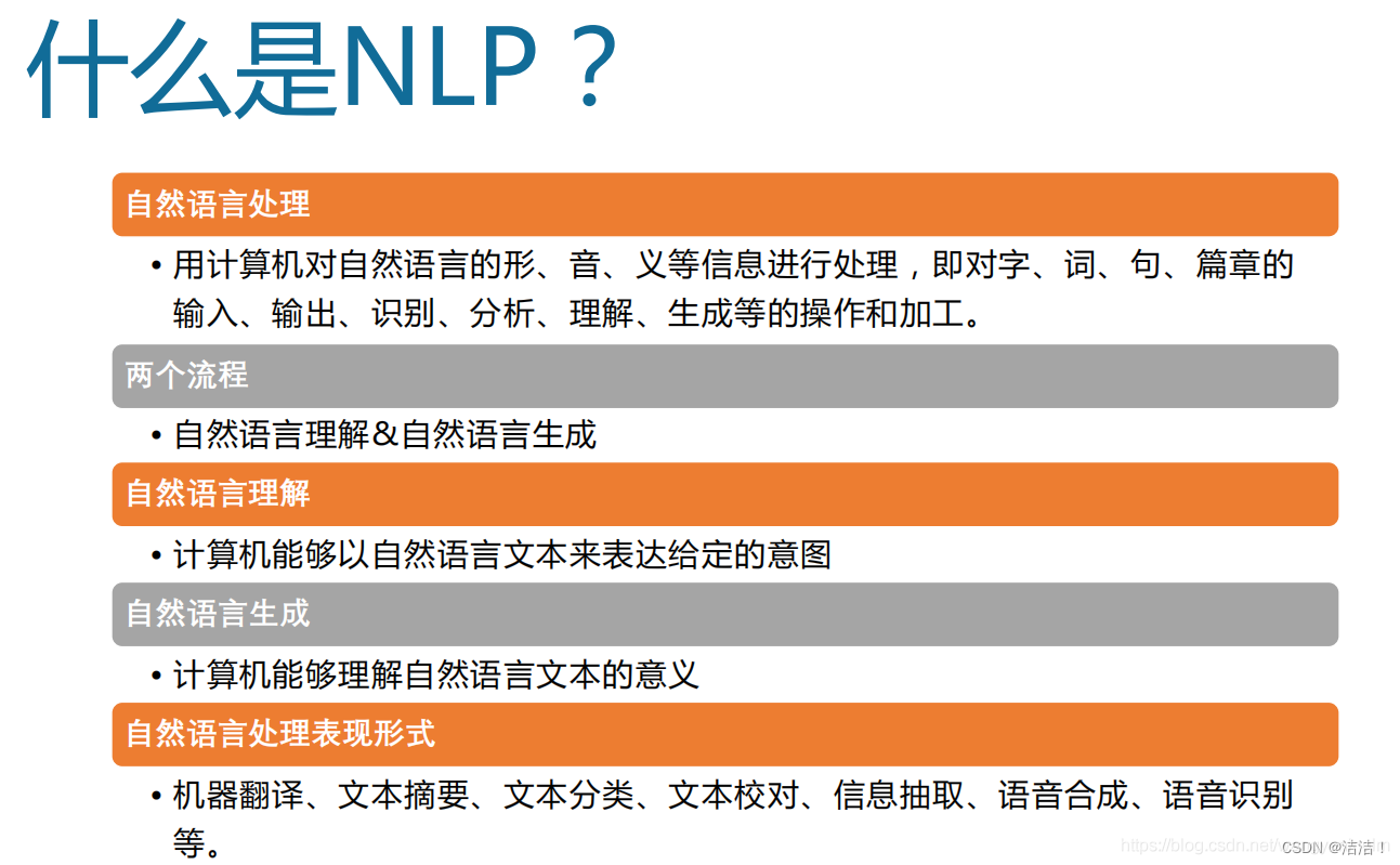 它主要关注如何让计算机能够理解、处理和生成人类语言。NLP的目标是使计算机能够像人类一样理解自然语言,包括语法、语义、语用等方面的知识,并能够进行自然语言的生成、理解、翻译、摘要、问答等任务。