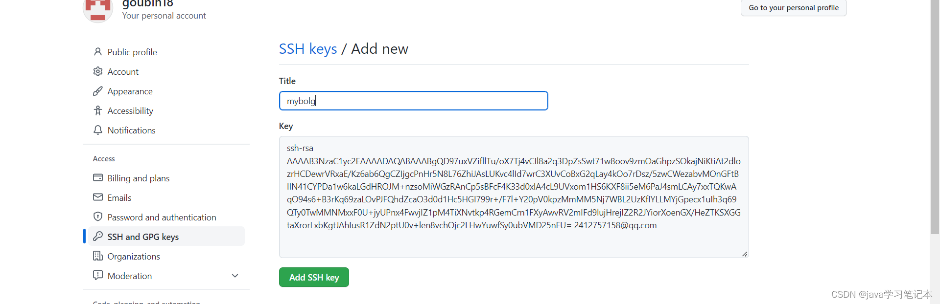 发现我们需要一个密钥,把我们刚刚复制的密钥粘进去,title随便起
