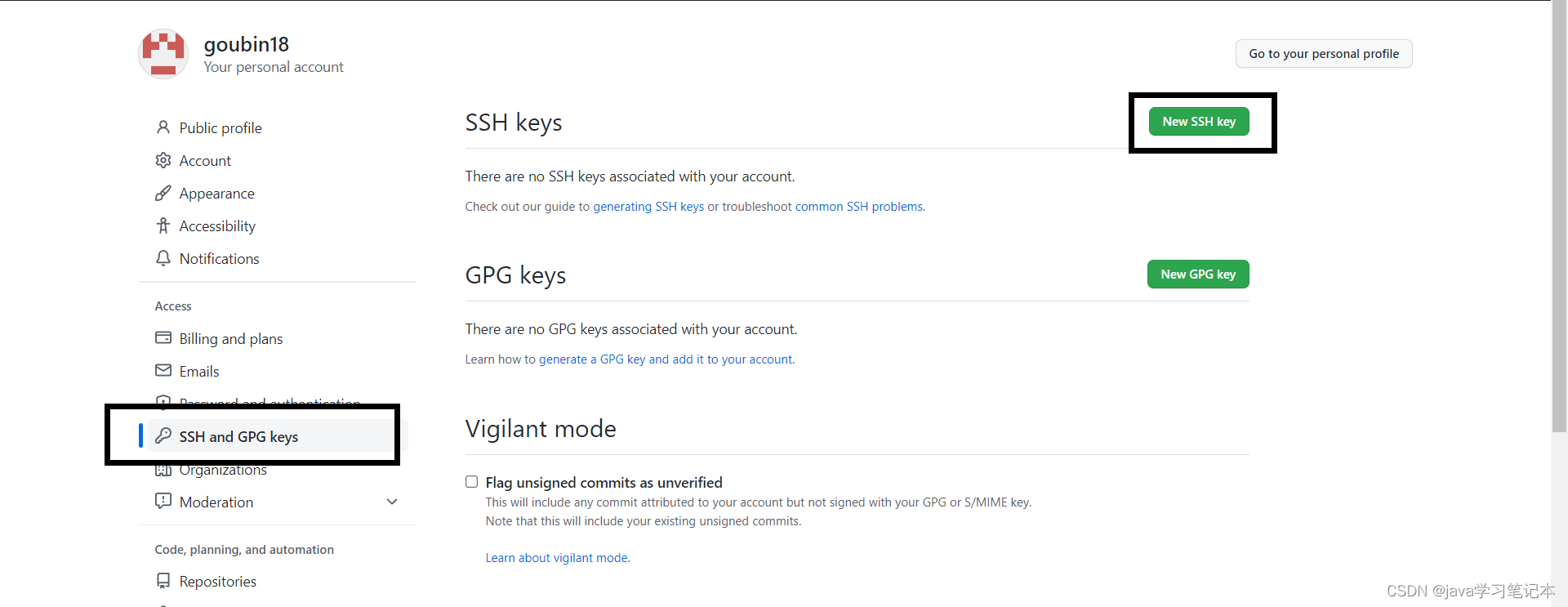 在Github上创建仓库完成之后,需要设置ssh免密登录