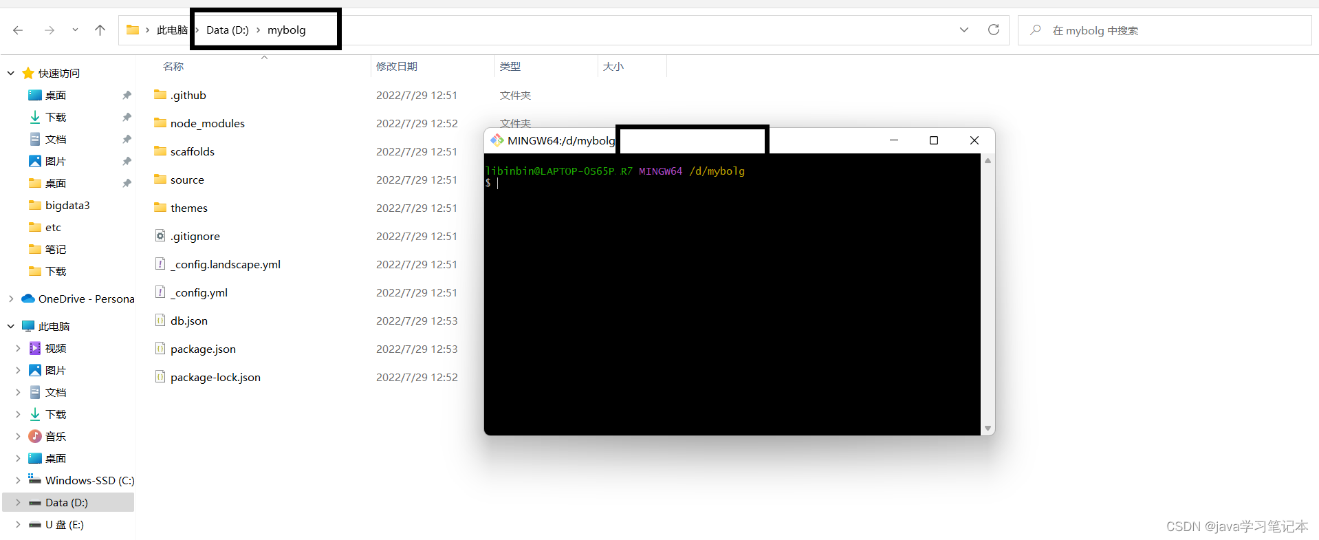 2.你可以先创建一个文件夹myblog,然后cd到这个文件夹下(或者在这个文件夹下直接右键git bash打开)。