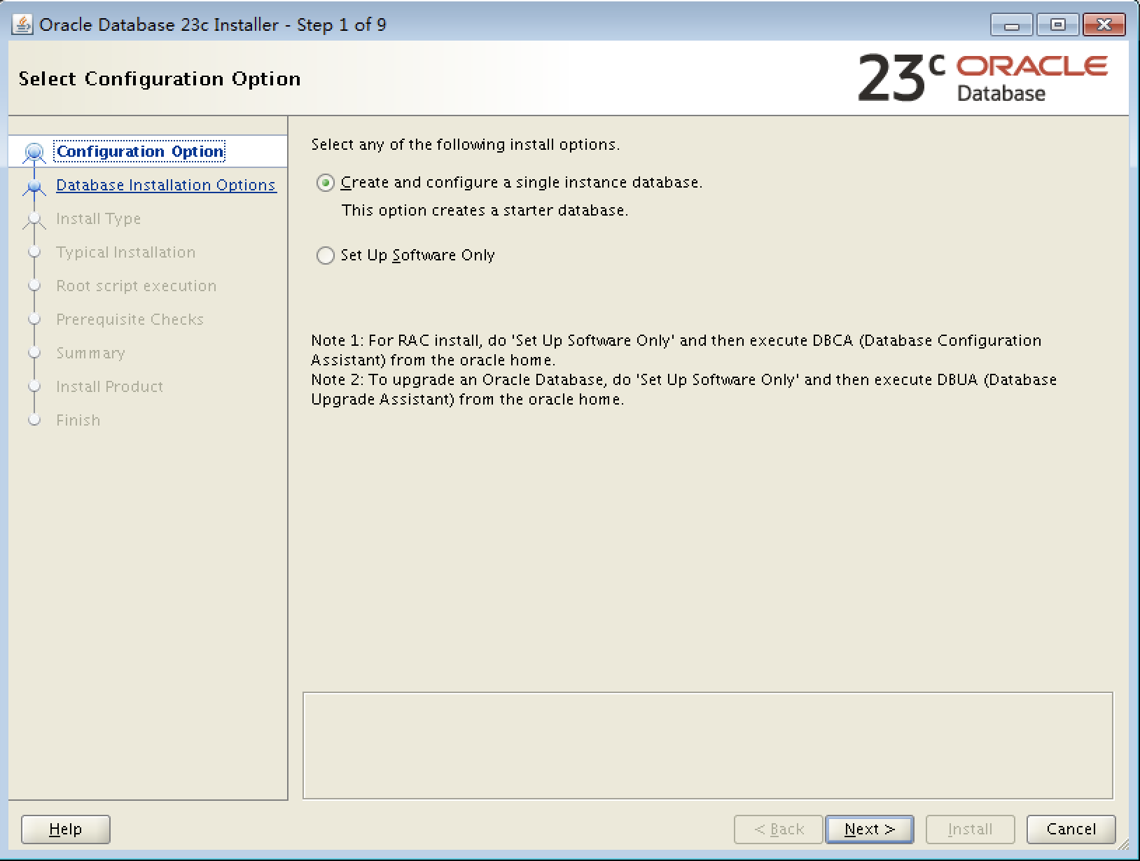 在这一步可以看到,23c这个下一代的长期支持版本,已不再提供non-cdb的选项: