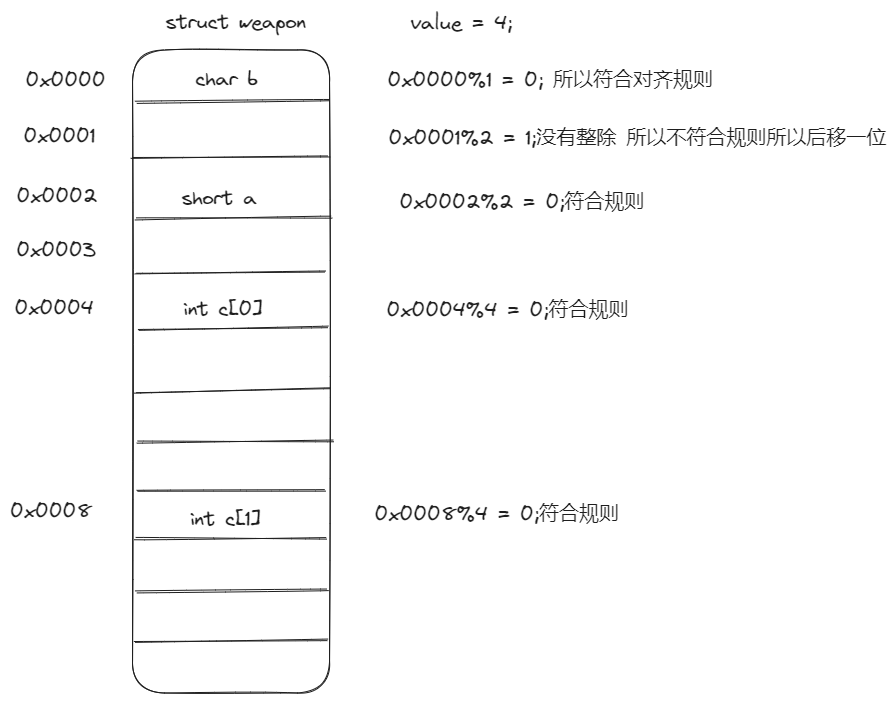 2)结构体内各数据成员的内存对齐,即该数据成员相对结构体的起始位置;