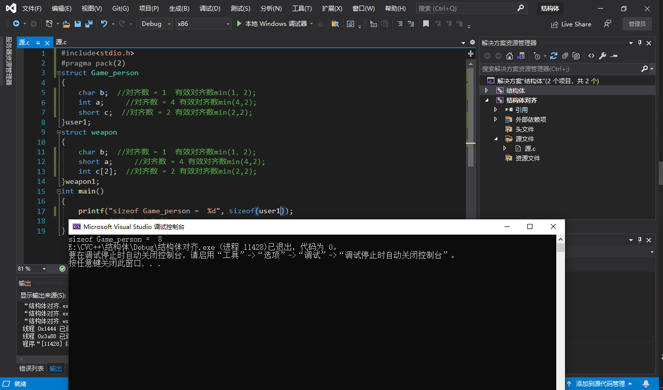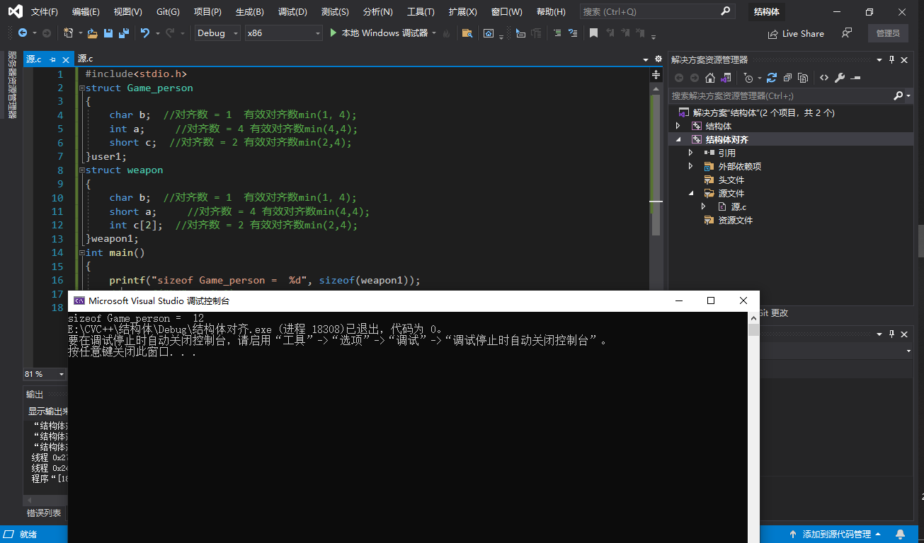 那我们现在就把这个结构体对齐