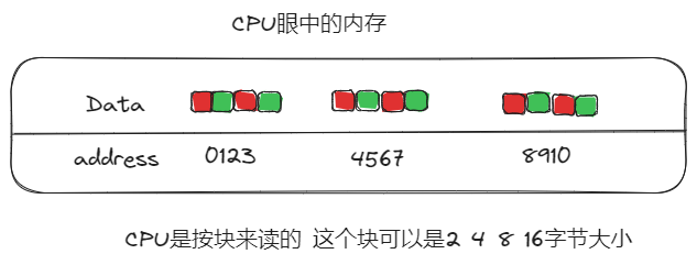 CPU如果读取内存的话会每次读4个字节,char虽然是1个字节,但CPU会读4个字节 。这就是我们之前说的如果我们紧贴着char后面存放intCPU要读取两次如果一次读四个字节是不是char 和 int都可以一次性读完。