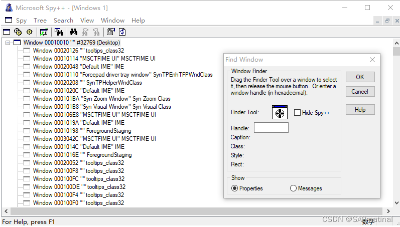 有了它,我们可以轻易通过python来连接本地的win32程序并通过捕获相应句柄来控制对应的窗口。当然,我们还要借助Microsoft Spy++ 来捕获各个窗口的句柄、ID、类、文本等关键信息,用以简化我们的编程过程。