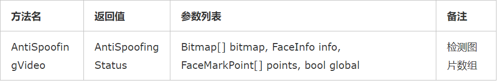 - AntiSpoofingVideo 的返回值 可能为 AntiSpoofingStatus.Real、AntiSpoofingStatus.Spoof、AntiSpoofingStatus.Fuzzy或 AntiSpoofingStatus.Detecting。