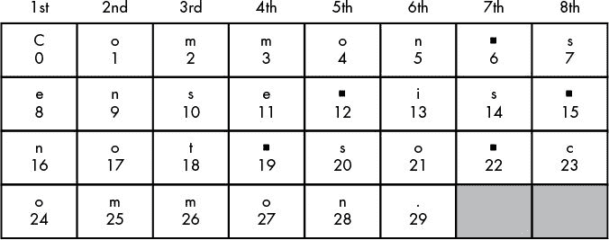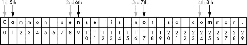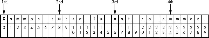 每次程序执行循环时(也就是说,在循环的每次迭代中),for语句中的变量(在第 21 行中是symbol)取包含字符串的变量中的下一个字符的值(在本例中是message)。for语句类似于赋值语句,因为变量被创建并赋值,除了for语句循环不同的值来给变量赋值之外。