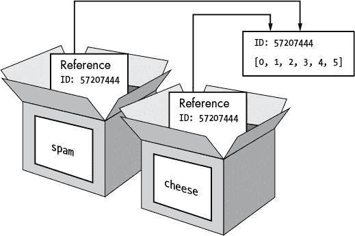 图 9-2:spam = cheese复制引用,非列表。