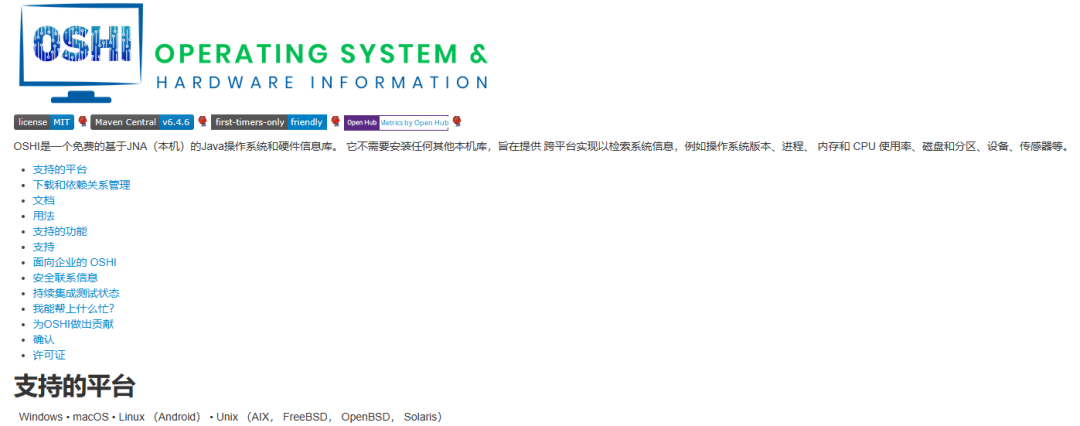 OSHI 起源于一个独立于平台的库,不需要额外的软件,并且具有与 开源和商业产品。在主要操作系统上开发了强大的核心功能。