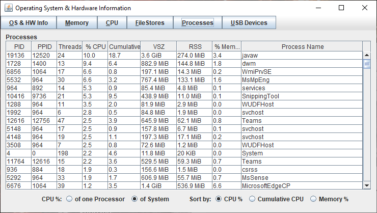 OSHI是一个免费的基于JNA(本机)的Java操作系统和硬件信息库。它不需要安装任何其他本机库,旨在提供 跨平台实现以检索系统信息,例如操作系统版本、进程、 内存和 CPU 使用率、磁盘和分区、设备、传感器等。