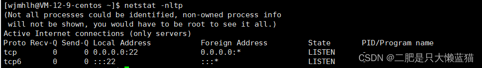 语法: netstat [选项] 功能:查看网络状态 常用选项: n 拒绝显示别名,能显示数字的全部转化成数字 l 仅列出有在 Listen (监听) 的服務状态 p 显示建立相关链接的程序名 t (tcp)仅显示tcp相关选项 u (udp)仅显示udp相关选项 a (all)显示所有选项,默认不显示LISTEN相关